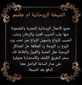 الشيخة الروحانية – معالجة روحانية – شيخه روحانية لعلاج السحر – الشيخه الروحانيه – شيخة روحانية – شيخة روحانية مضمونة – رقم شيخة روحانية – شيخة روحانية صادقة ومجربة – شيخة روحانية مجربة – أشهر شيخه روحانيه لجلب الحبيب اقوى شيخه روحانيه – افضل شيخة روحانية – شيخة لجلب الحبيب – شيخة تفك السحر – رد الزوج – رد الزوجة – جلب الزوج لزوجته