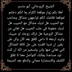 الشيخ الروحاني أبو جاسم هو اسم تعريفي للخدمات المقدمة عبر هذا الموقع.